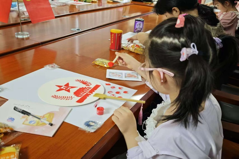 活動(dòng)現(xiàn)場(chǎng),公司黨員志愿者向孩子們發(fā)放了印有國(guó)旗、黨徽、“童心向黨”“不忘初心”等元素的拓印模板、空白扇子及顏料等材料,并圍繞紅色符號(hào)展開(kāi)講解,讓大家理解每個(gè)圖案背后的歷史意義和精神內(nèi)涵。隨后志愿者們示范拓印方法,孩子們專注投入,有的仔細(xì)調(diào)整圖案位置,有的認(rèn)真拓上紅色顏料,現(xiàn)場(chǎng)氛圍熱烈且充滿活力。