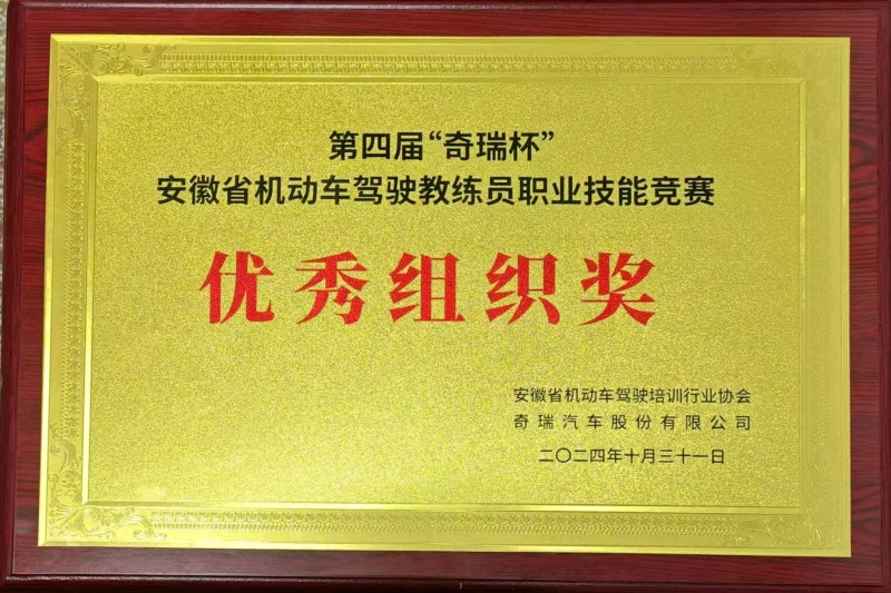 近日,同慶駕校榮獲2024年安徽省機動車駕駛教練員職業(yè)技能競賽“優(yōu)秀組織獎”。